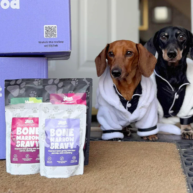 Gourmet and deliciously thick; our Years bone marrow gravy has been crafted by chefs, in house, to be the perfect addition to your dogs food! Collagen rich for joint support with naturally occurring electrolytes to aid in hydration